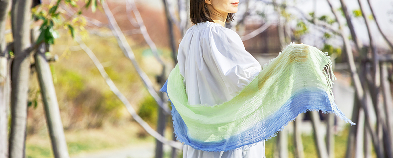 福木、月桃、琉球藍で染色した南国情緒あふれるストール。
