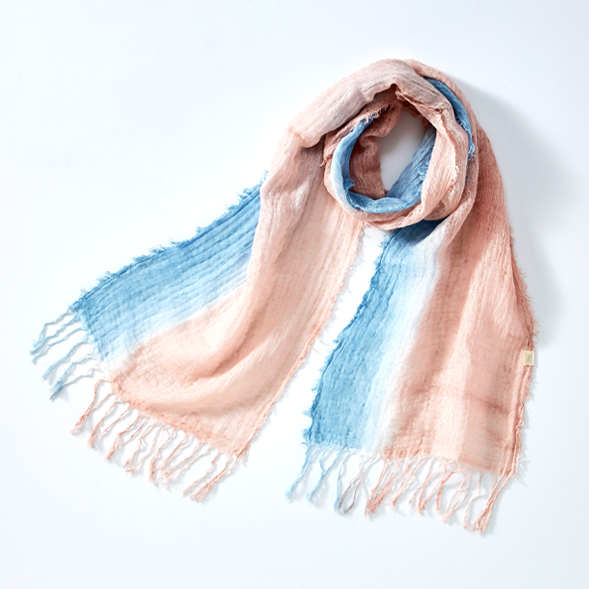 ピンクやイエローの鮮やかなカラーは、顔映りをよく見せてくれるのでワントーン明るい雰囲気になります。爽やかな白シャツやワンピースに合わせれば、着こなしのアクセントにも。巻き方によって表情が変わるので、巻くたびに新鮮な気持ちでお使いいただけます。別売の「土佐和紙リング」と合わせることで、アレンジもお楽しみいただけます。